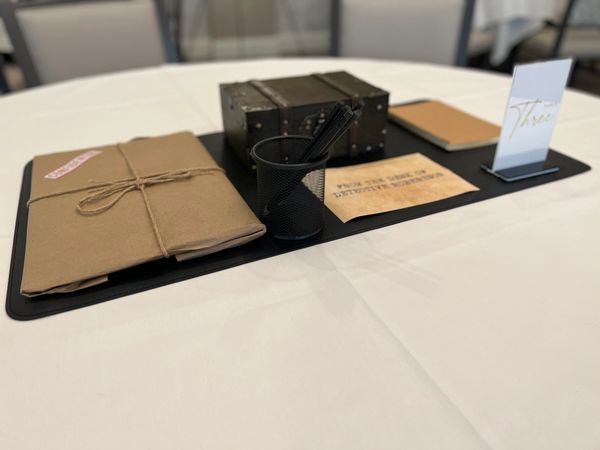 Your team will need to search out and find where the Police Mail Room is on the grounds. Once there, collect your team's envelope and head back to your table or search for more evidence and clues.