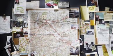 As you move through the game, you will be crossing off suspects on the 4-foot x 3-foot murder board using dry erase markers provided at each team table. Your murder board will be on an easel and turned away so no other teams can see it. We also include a suspect eliminate worksheet if you want your work to be more private away from spying eyes!